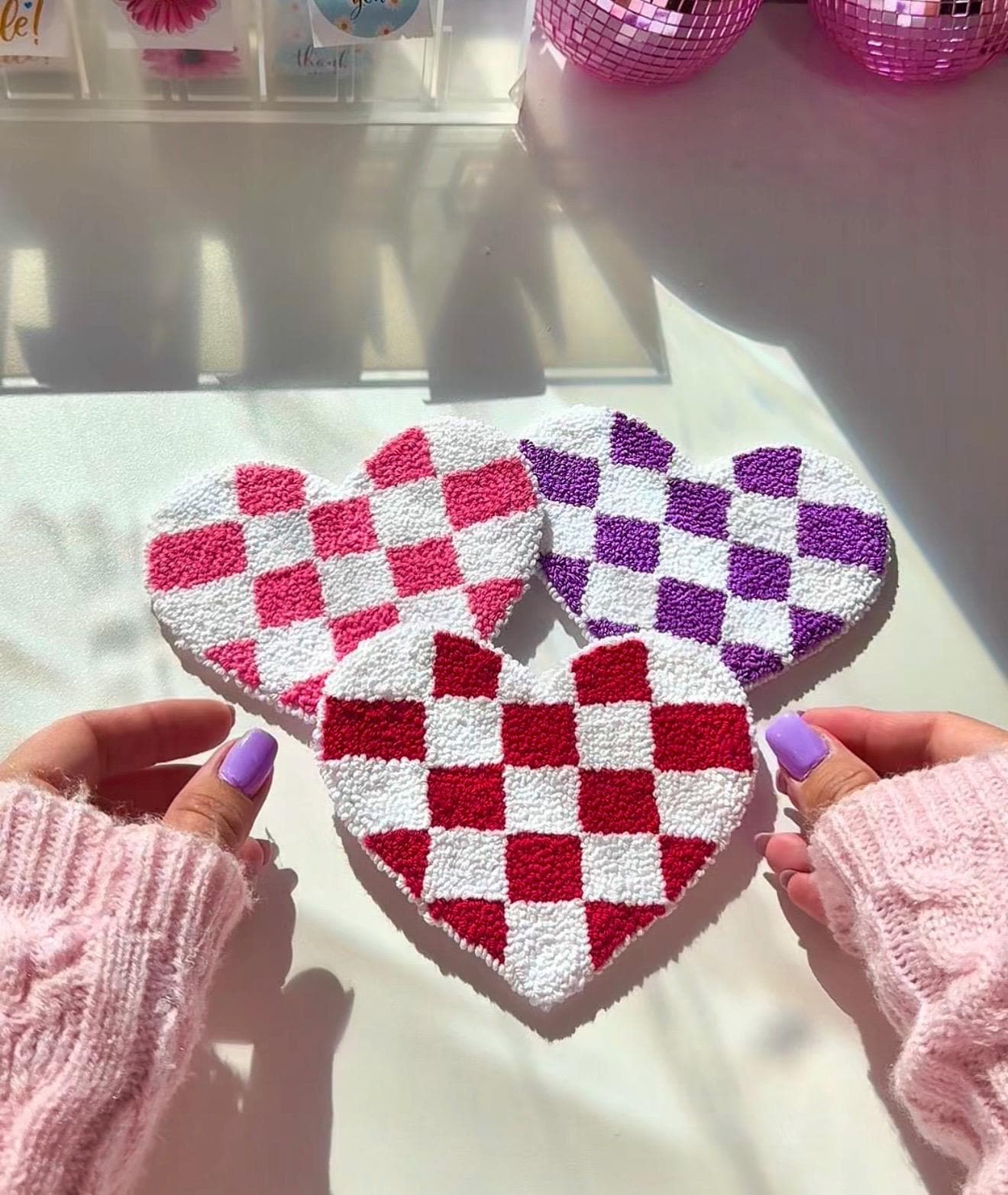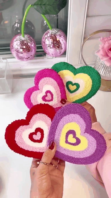 DIY Set of 2 - Punch Needle Mug Rug Coaster Kit – Heart Design