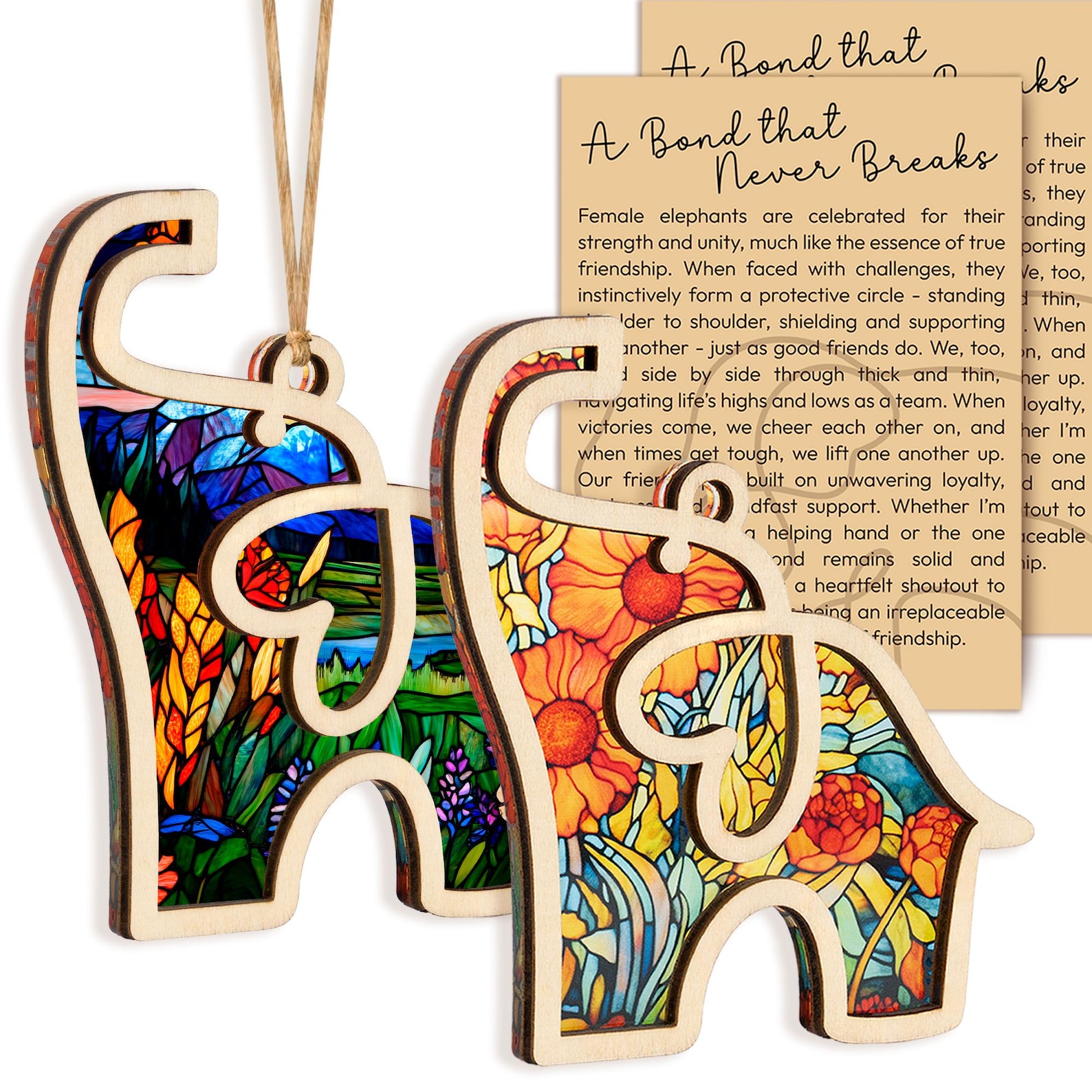 Friendship Elephant Easter Ornament with Story Card, Friendship Gifts for Women Tribe, Heartfelt for Best Friends Sisters, Sisterhood Special Bond Decor (Set 2 Suncatcher)