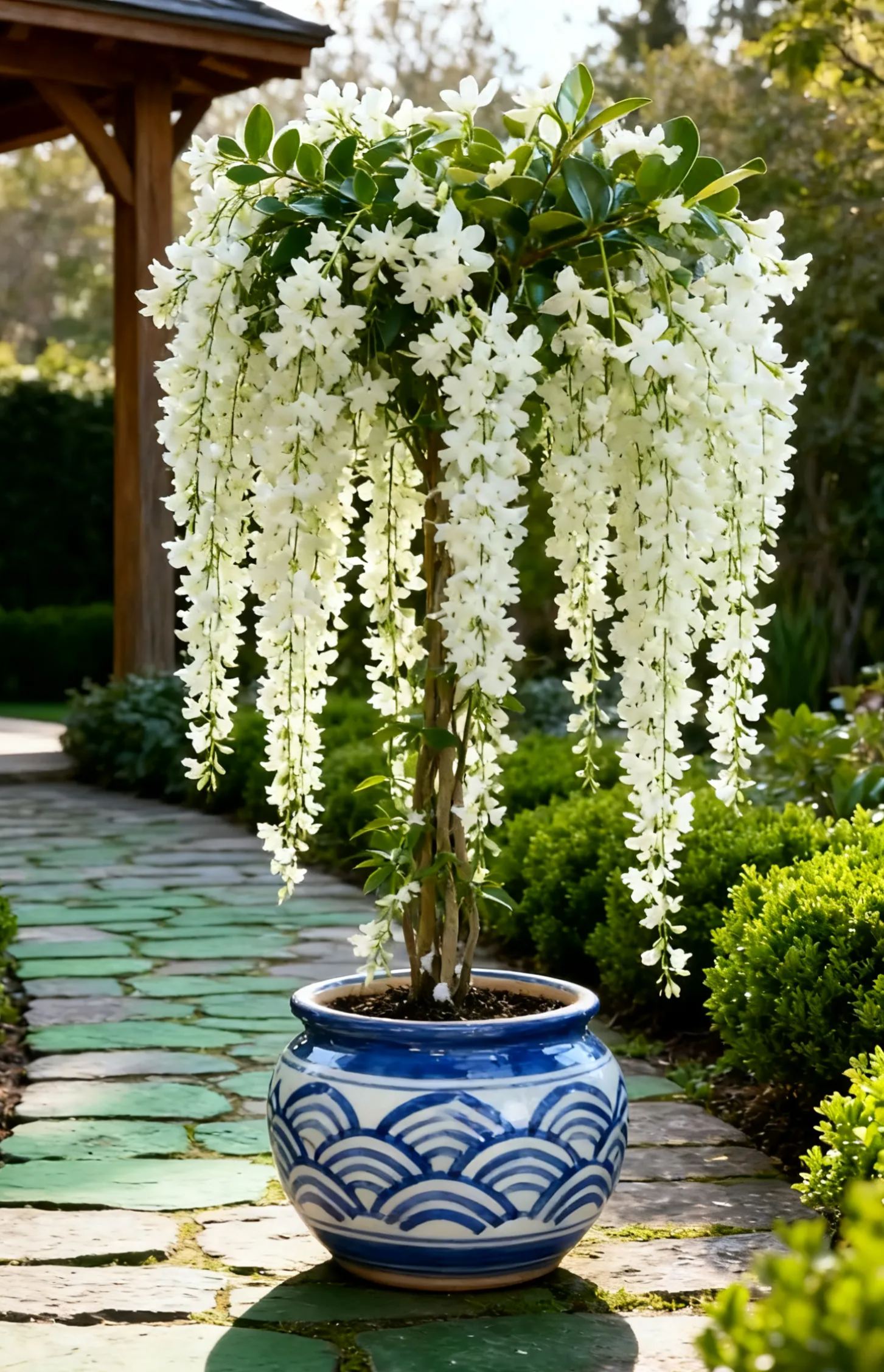 Support: Provide a trellis or suitable support for the vines to climb and cascade.