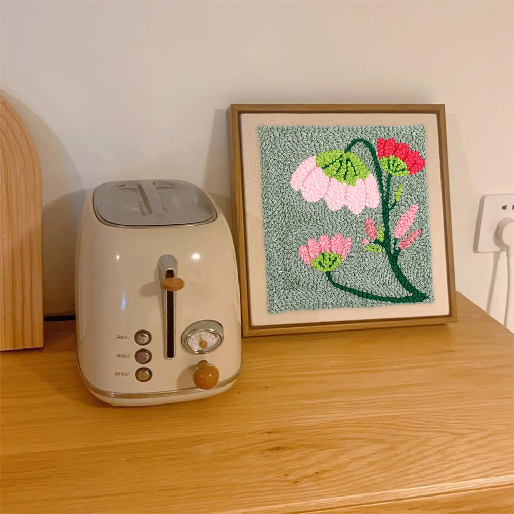 Charming Flower Square Punch Needle Kit - Unique Floral Handicraft | Great Needlepoint For Beginners