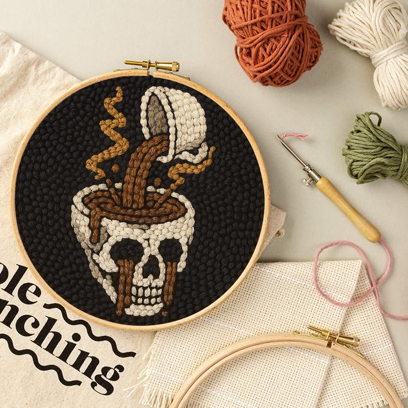 Coffee Skull Punch Needle Kit - Spooky Halloween Craft | Perfect For Holiday Decor