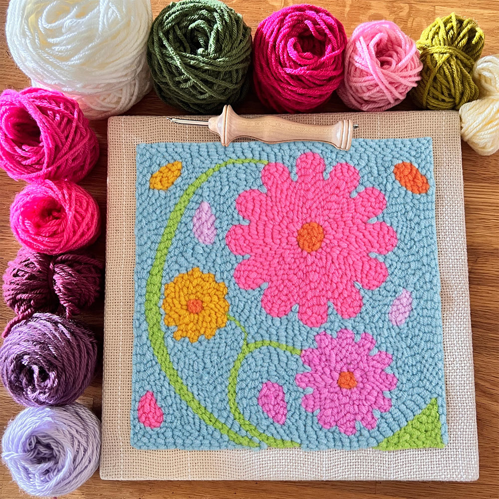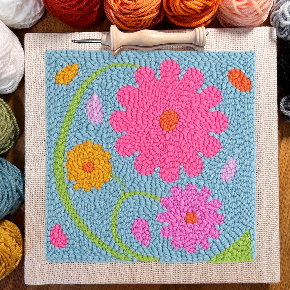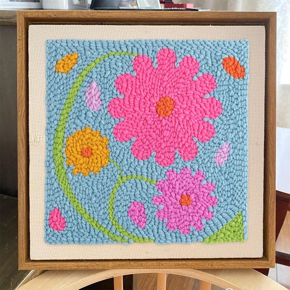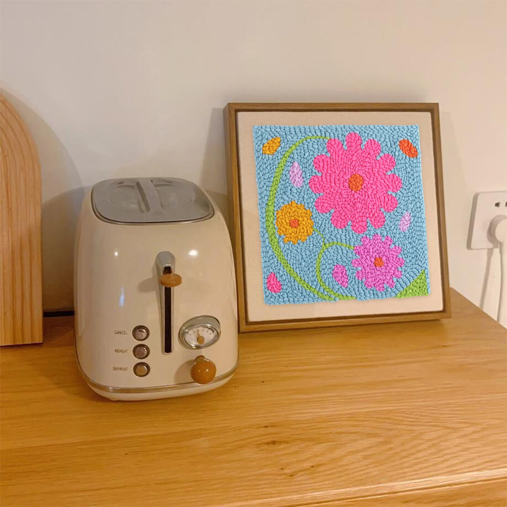 Colourful Flowers Square Punch Needle Kit - Handmade Floral Artwork | Nice Gifts For Housewarming