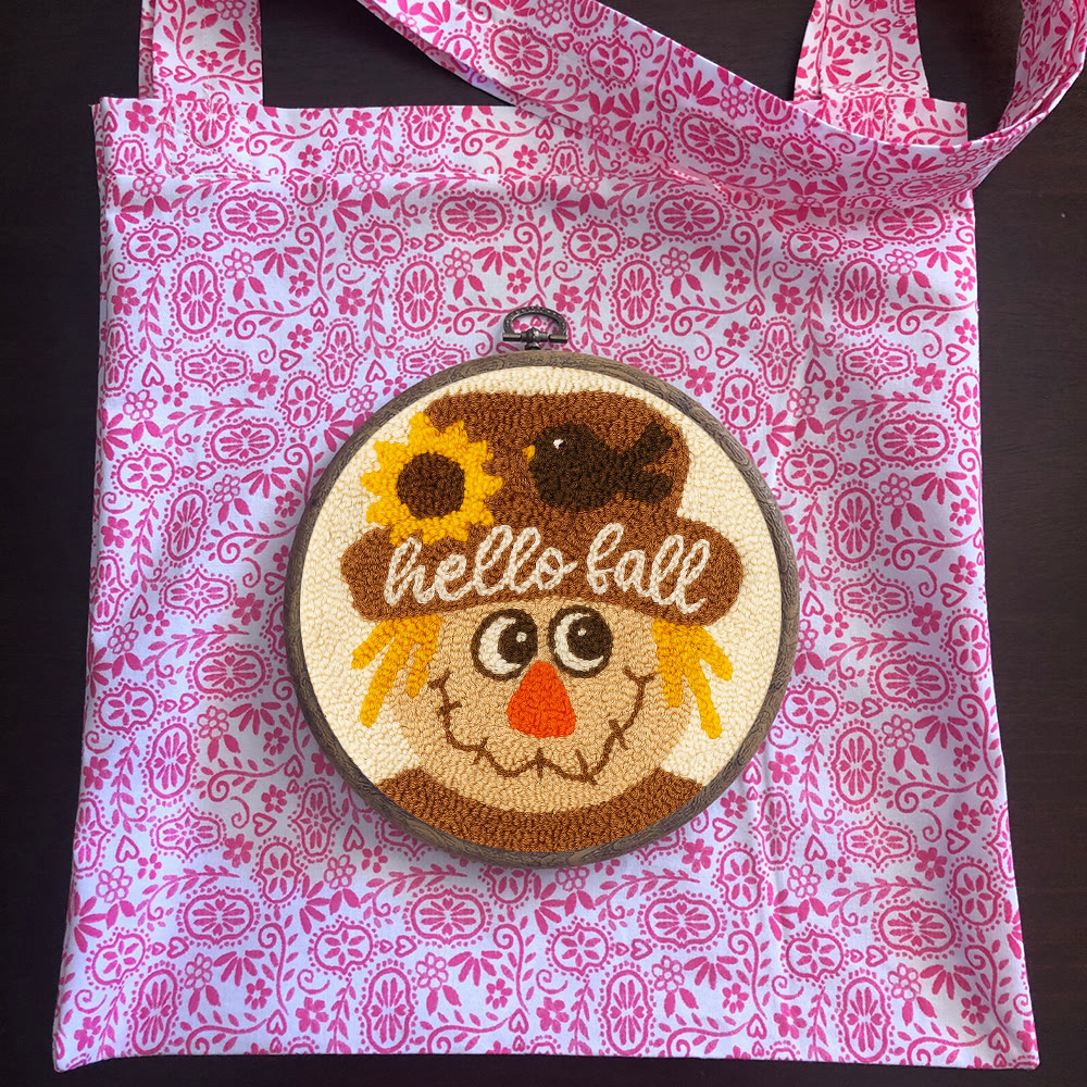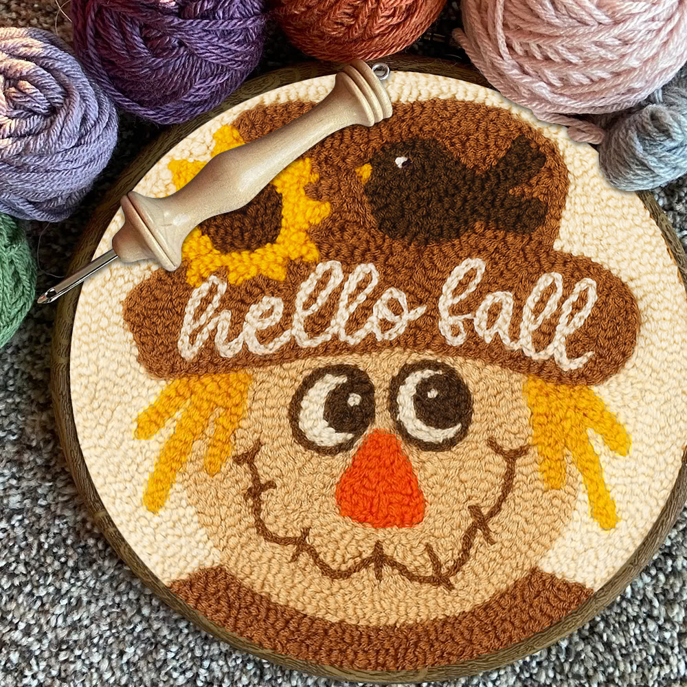 Fall Scarecrow Punch Needle Kit - Autumn Home Ornament | Diy Hanging Art