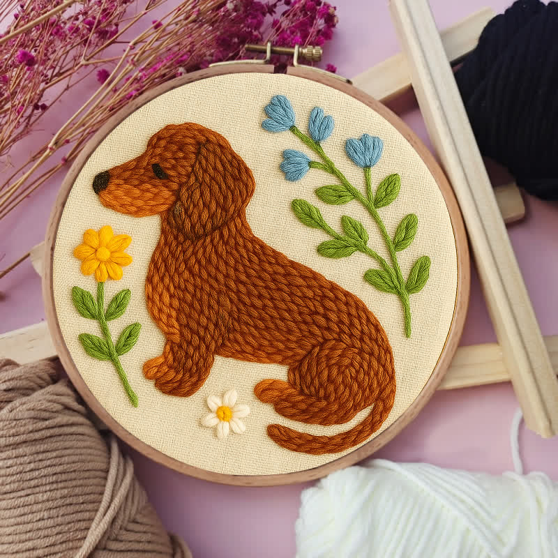 Floral Dachshund Punch Needle Kit - Yarn Craft | Handmade At Home | Personalised Gift