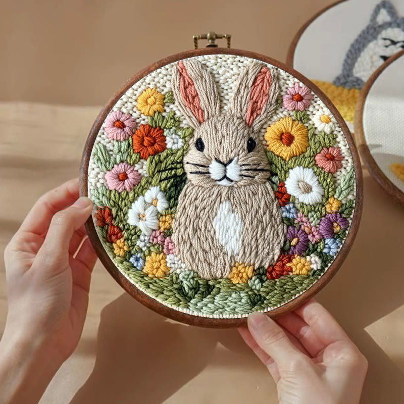 Floral Rabbit Punch Needle Kit - Bunny Artwork Collection | Unique Holiday Gifts