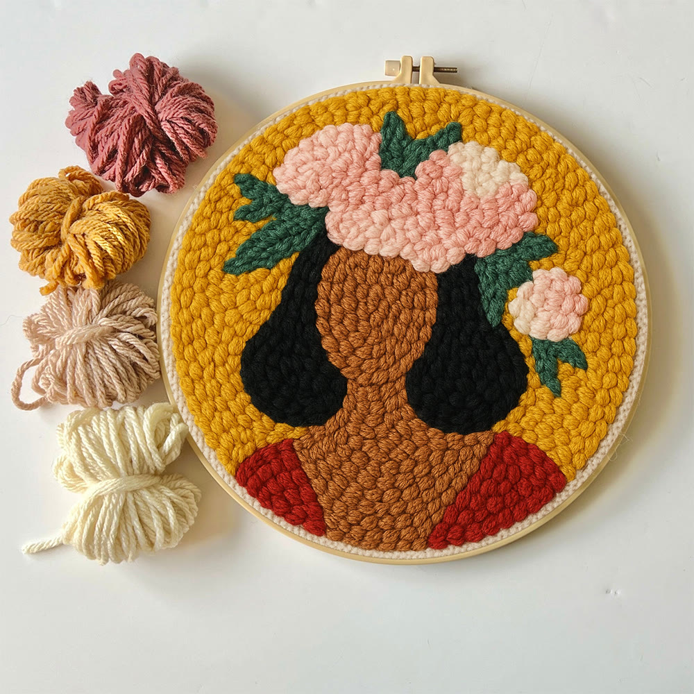 Floral Women Punch Needle Kit - Unique Home Decor | Diy Handmade Craft