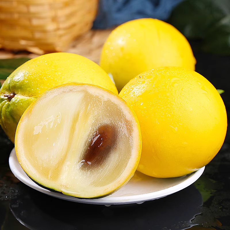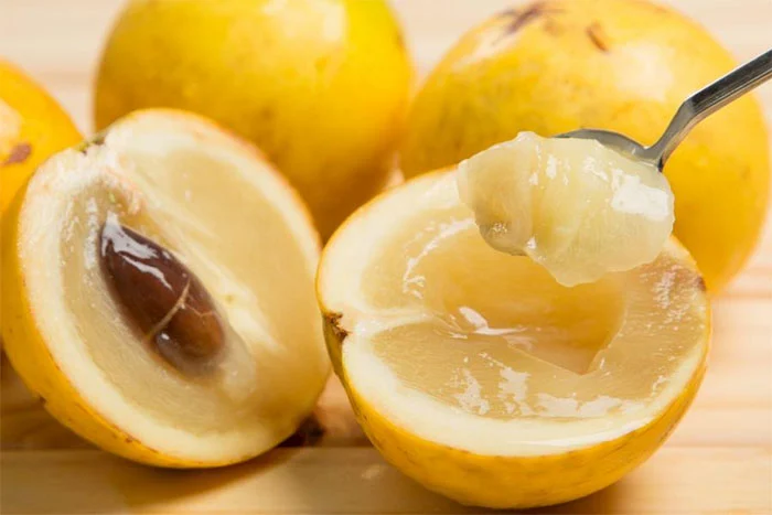 Some people describe the flavor as similar to a crème caramel flan! Each fruit typically has one or two black oblong-shaped seeds.