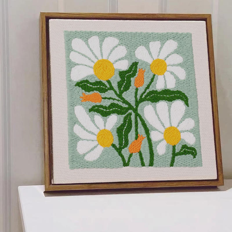 Green Floral Square Punch Needle Kit - Easy Handmake Craft | Great Room Ornament