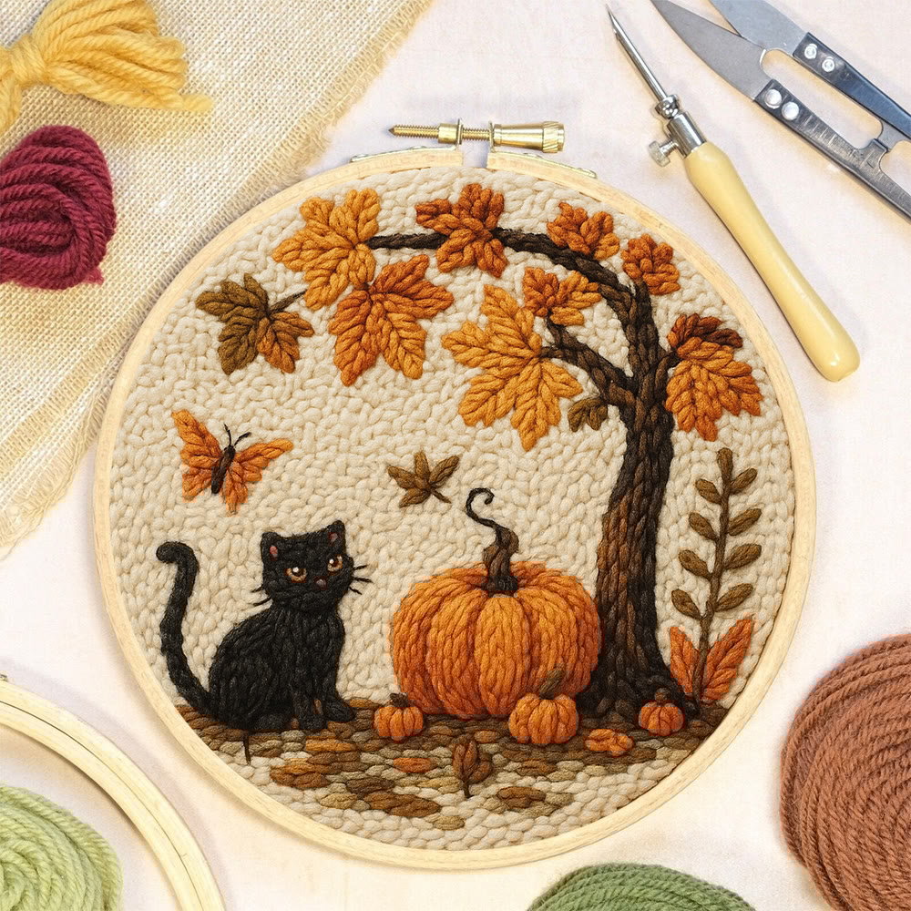 Halloween Autumn Punch Needle Kit - Diy Punch Needle Coaster | Halloween Pumpkin Handicraft | Easy Festival Decoration