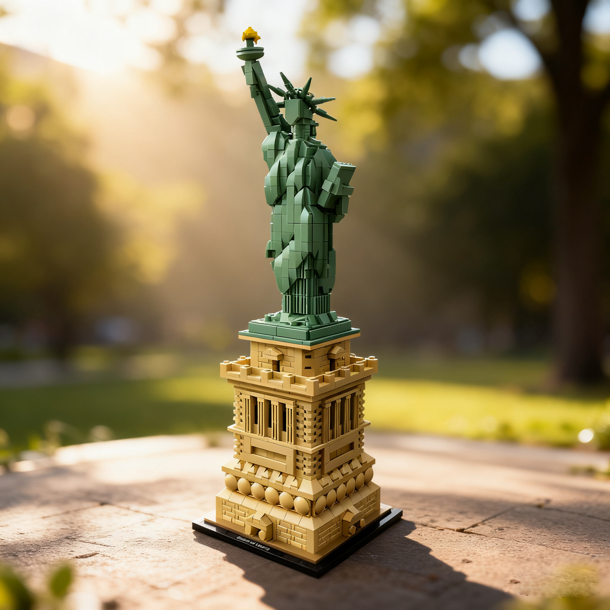This meticulously crafted replica captures the majestic posture of Lady Liberty. her flowing robe. crown of seven rays. and the torch that lights the world. The pedestal is built with textured brick detailing that mirrors the monument’s neoclassical structure.