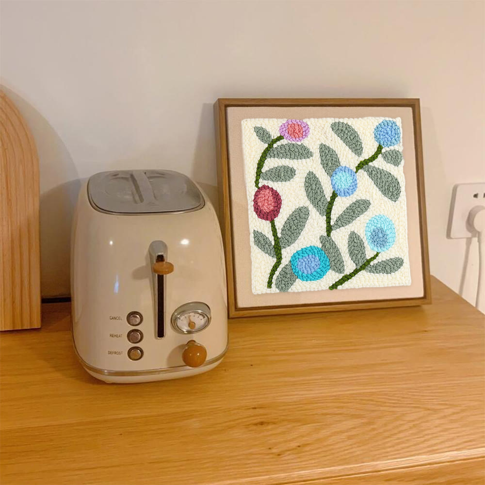 Little Flower Square Punch Needle Kit - Diy Handmade Yarn Craft | Floral Wallhanging Ornament