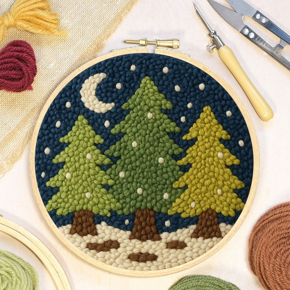 Nightfall Trees Punch Needle Kit – Starter Stitch Kit | Quiet Winter Wall Art