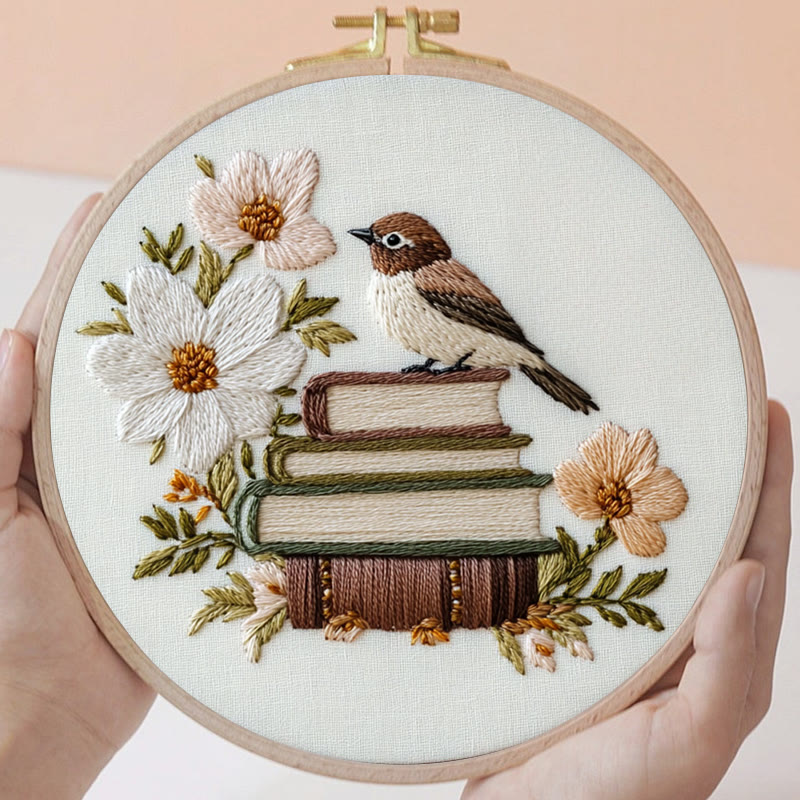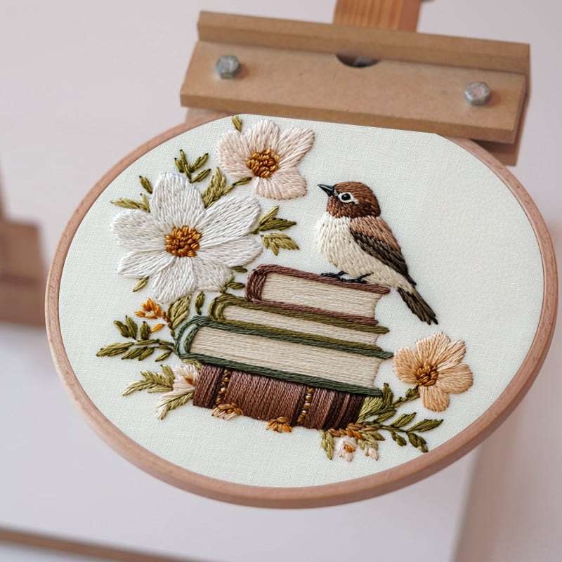 Rubbyoo Embroidery Kit - Bird on the Bookshelf | For Craft Lover Starter kit