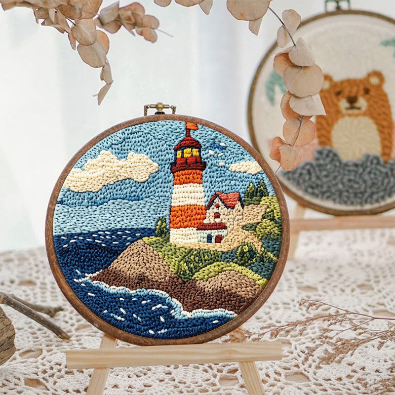 Seaside Lighthouse Punch Needle Kit - Beautiful Landscape Craft | Perfect Room Decoration
