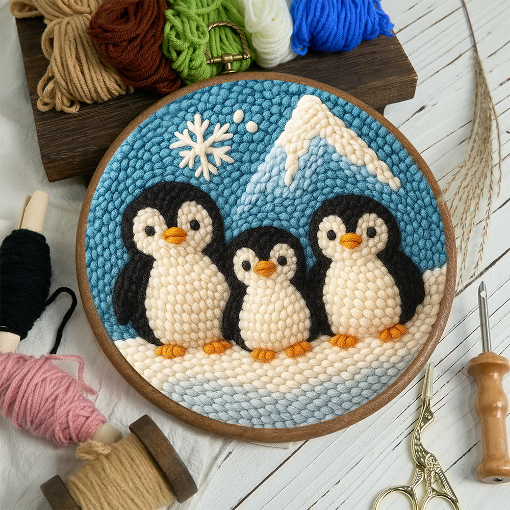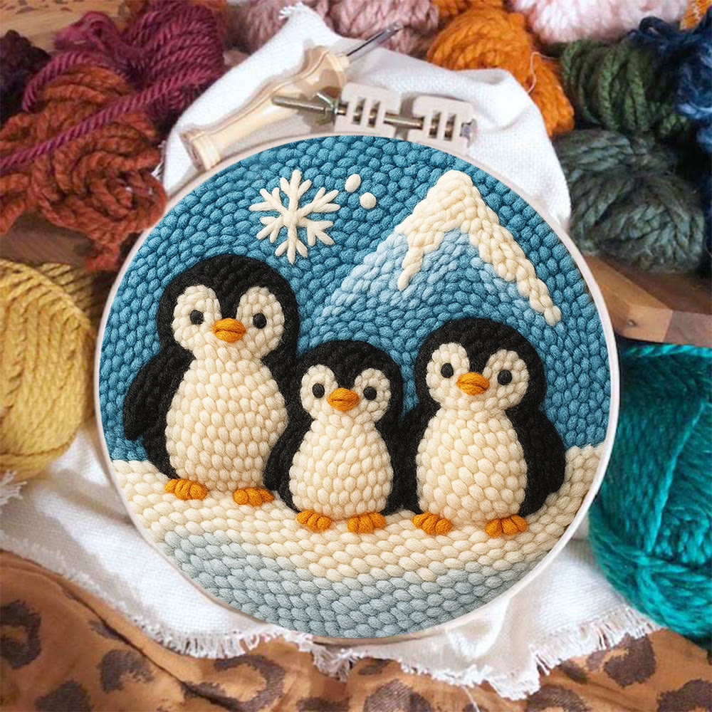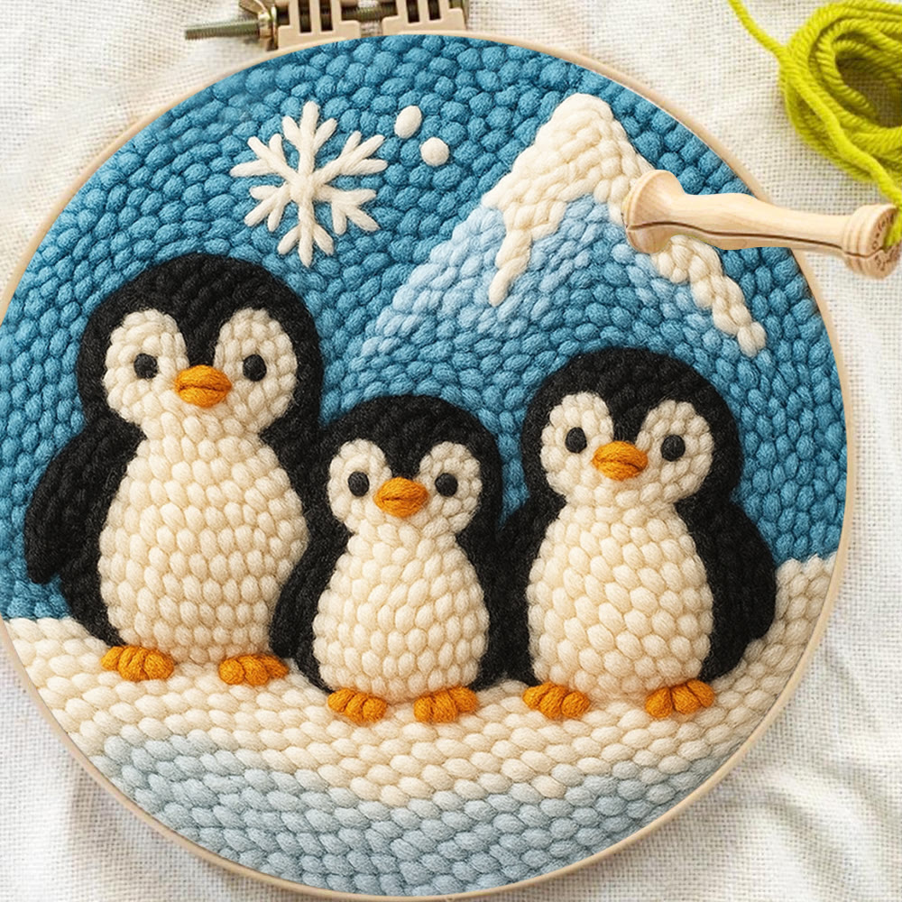 Snowy Penguin Trio Punch Needle Kit – Fun-spirit Diy Craft | Charming Winter Nook Ornament