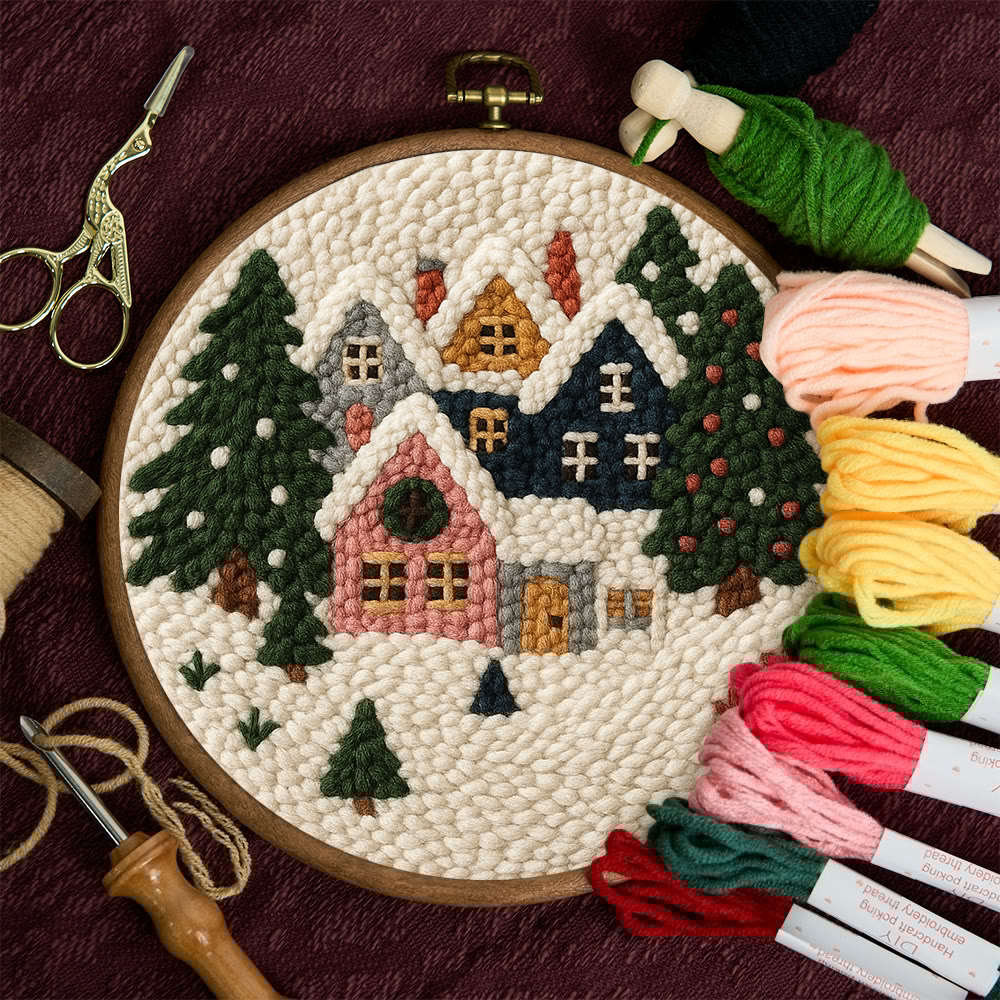 Snowy Village Punch Needle Kit – Simple DIY Project | Cozy Holiday Display