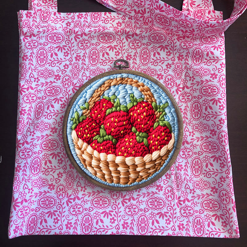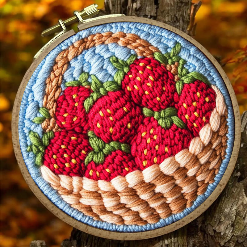 Strawberries Punch Needle Kit - Handmade Art Collection | Beginner-friendly Needle Craft