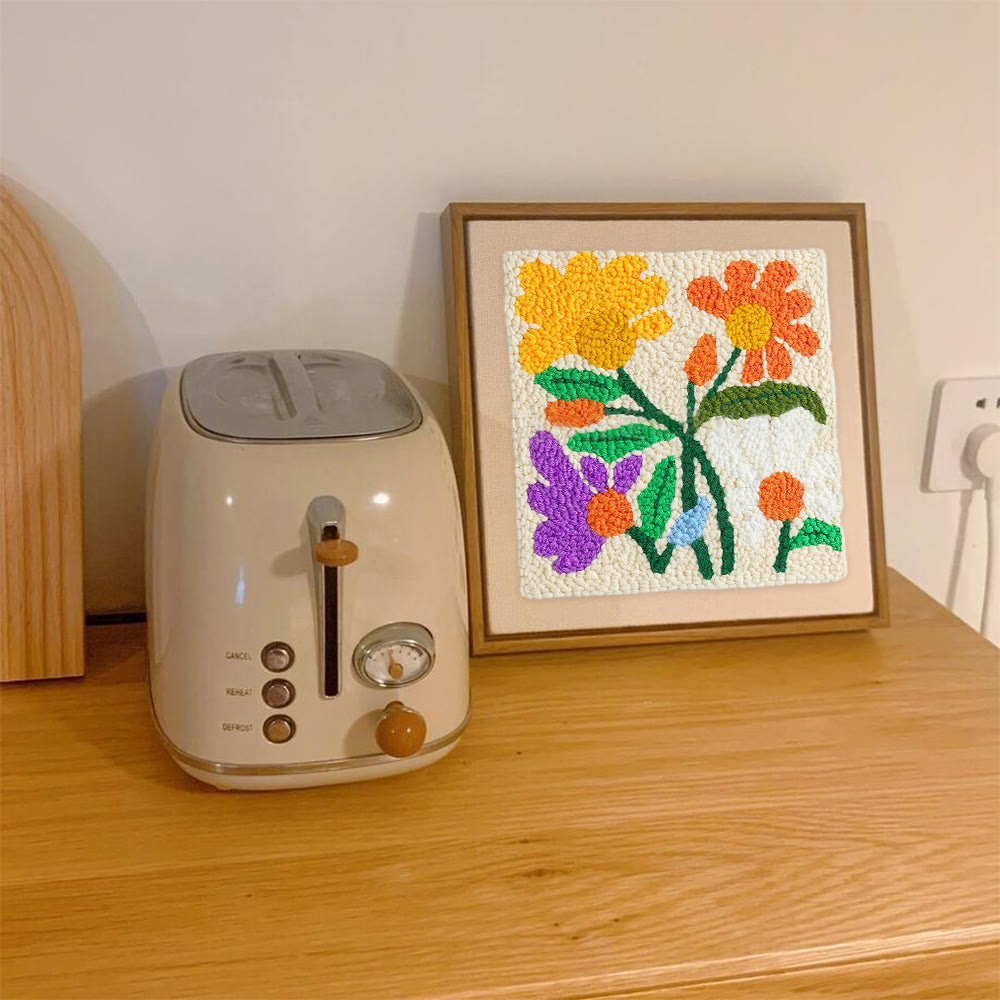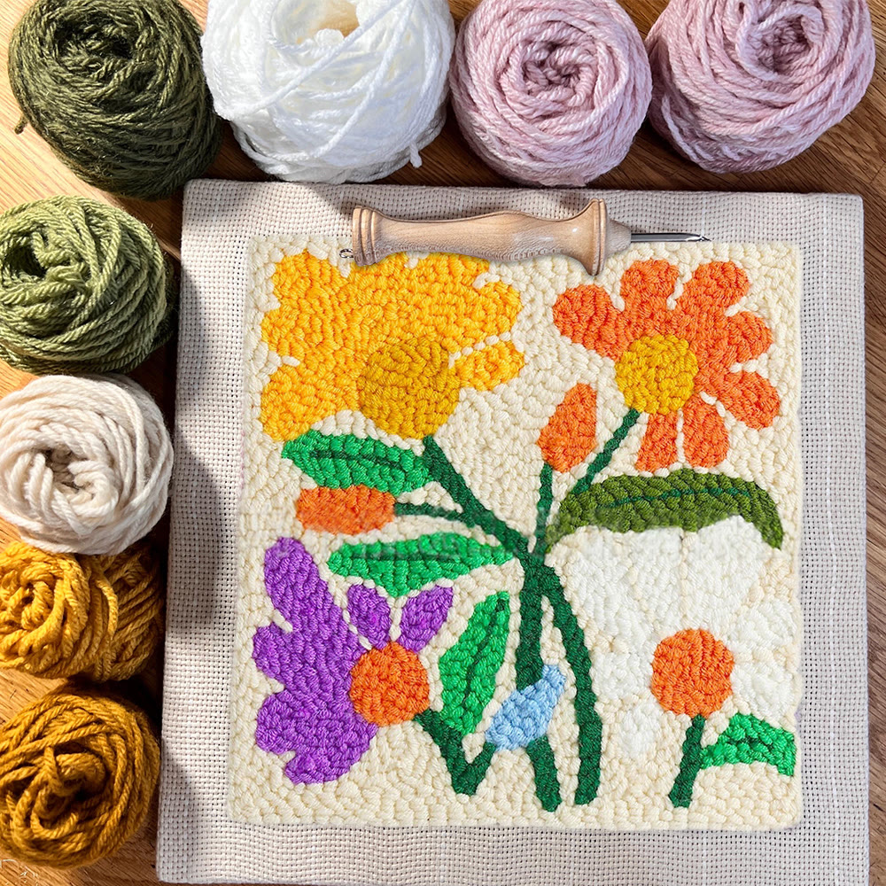 Stunning Flower Square Punch Needle Kit - Decorative Handmade Craft | Diy Floral Gifts