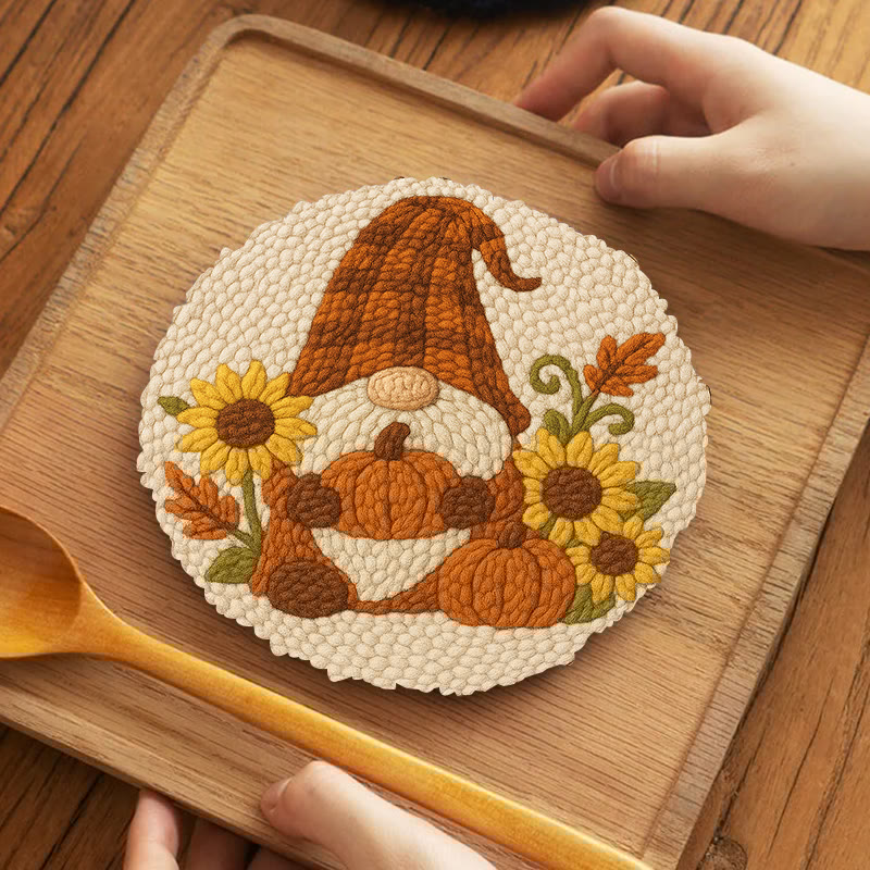 Sunflower Gnome Punch Needle Kit - Halloween Pumpkin Craft | Holiday Handmade Decor