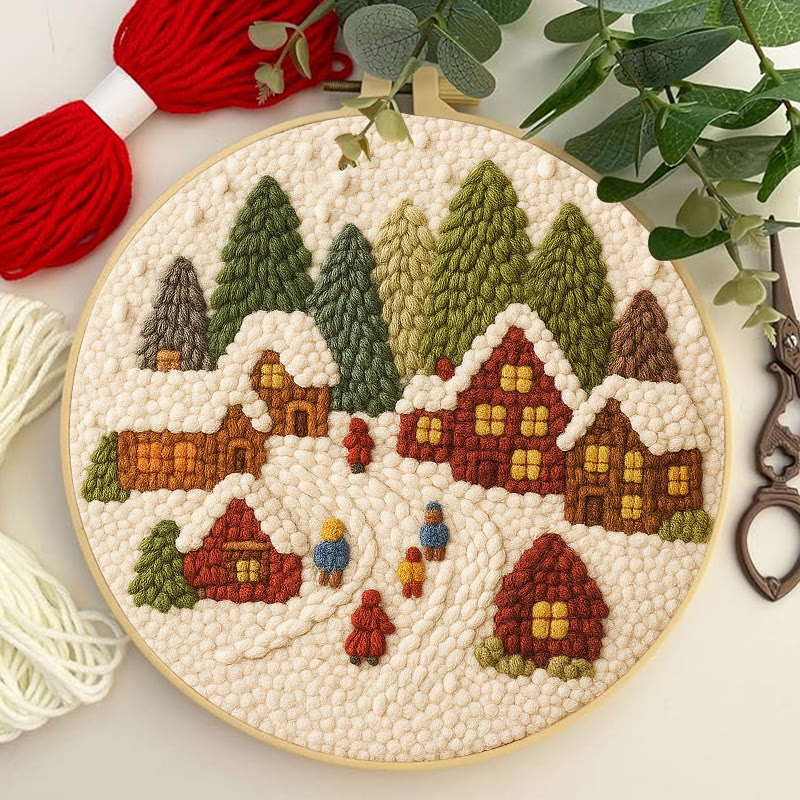 Winter Scene Punch Needle Kit - Christmas Handmade Craft | Christmas Home Ornament