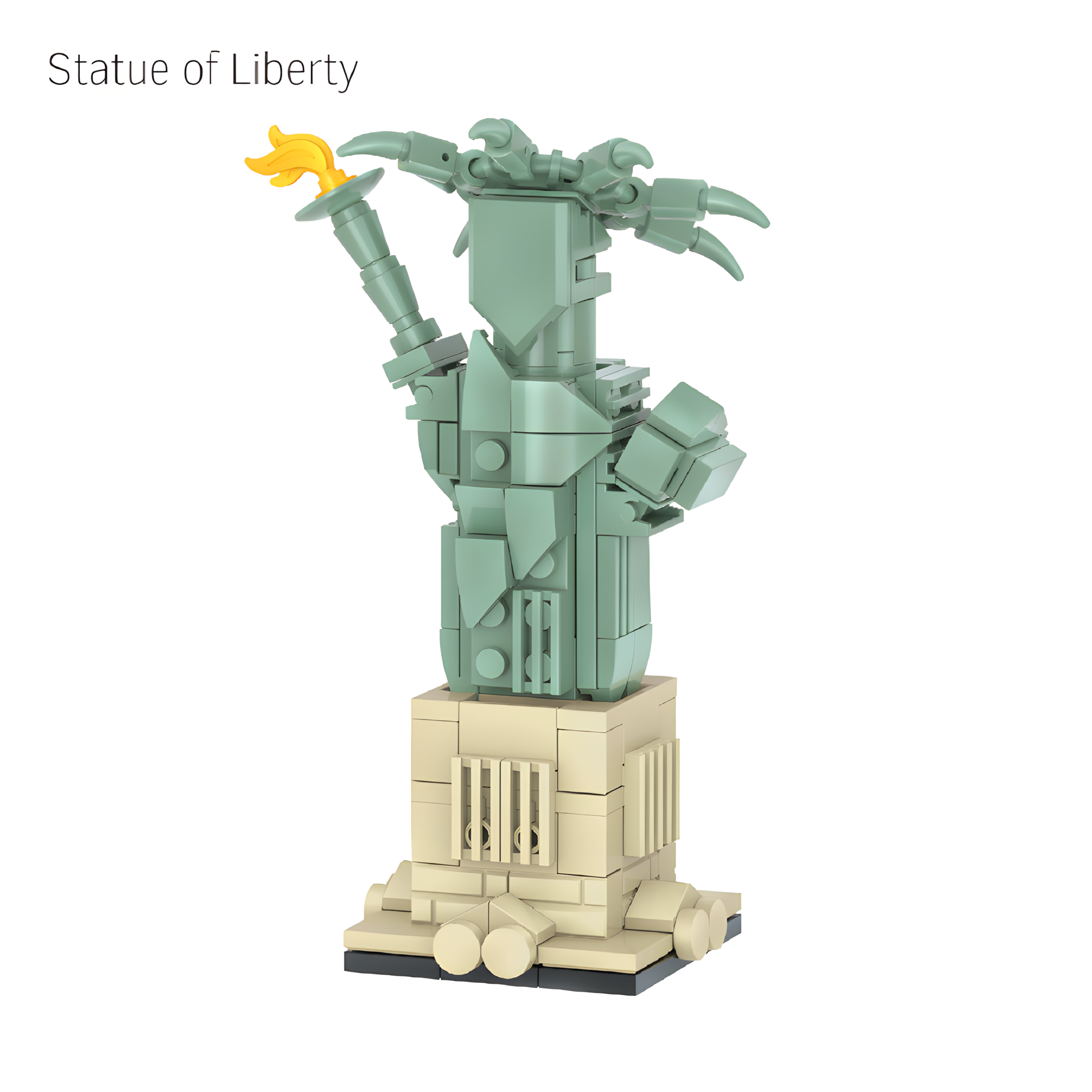 Lady Liberty rises in a stylized mini-block interpretation. featuring her torch. crown. and iconic pedestal—perfect for fans of American landmarks.