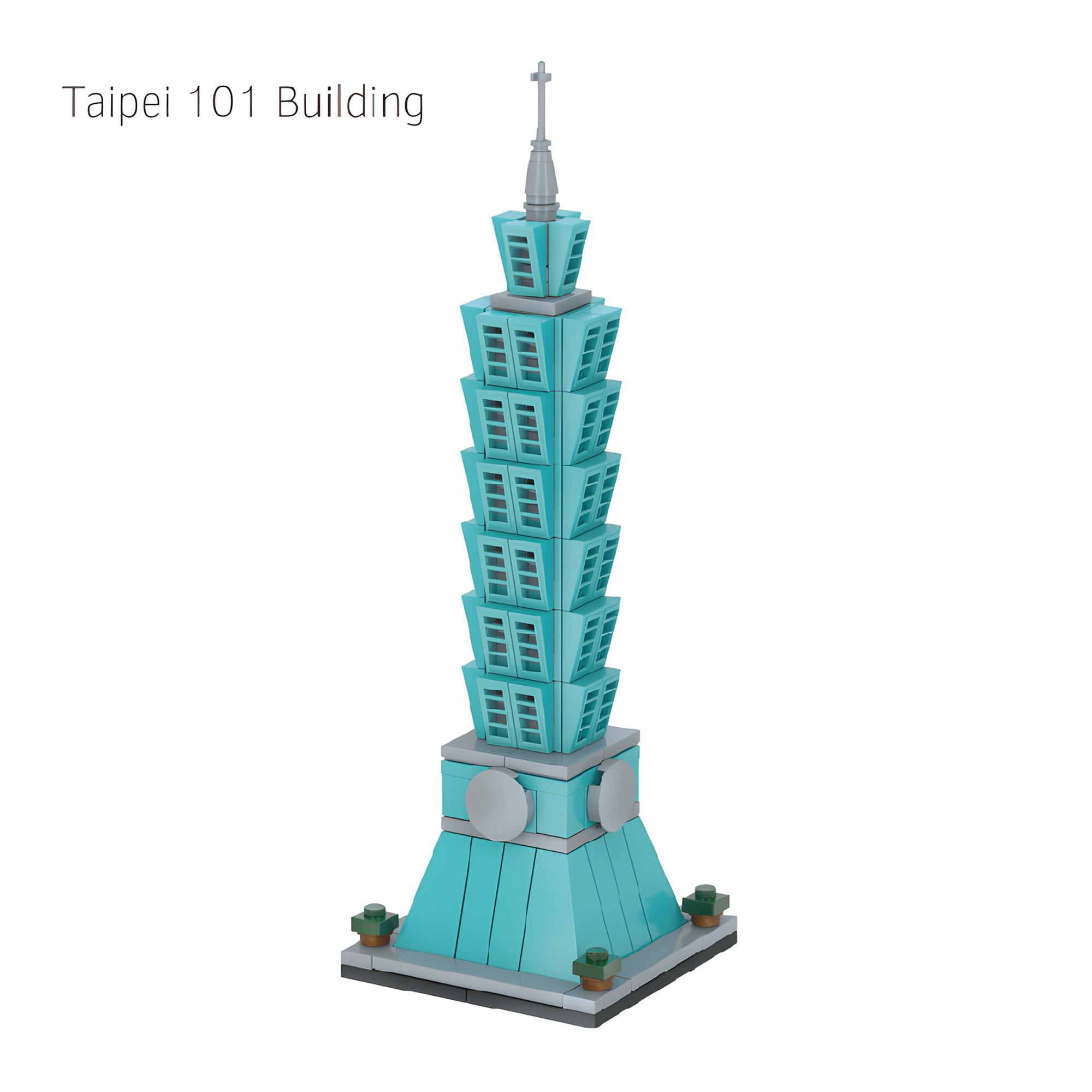 A highly recognizable skyscraper recreated in vibrant mini-block detail. The tiered structure and bold turquoise color make it an eye-catching addition to any collection.