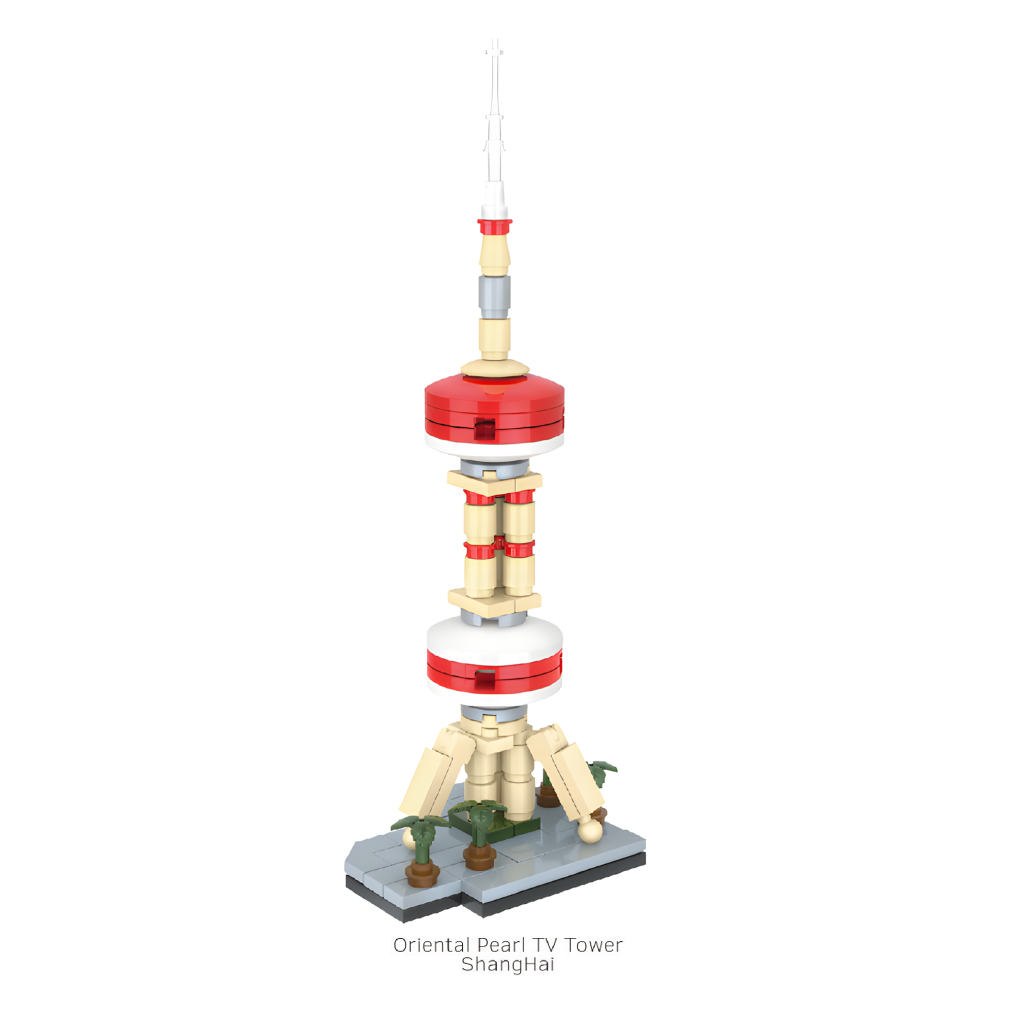 A meticulous micro-scale replica of Shanghai’s famous landmark. The red-and-cream spherical segments and distinctive structure capture the tower’s futuristic and cultural identity.